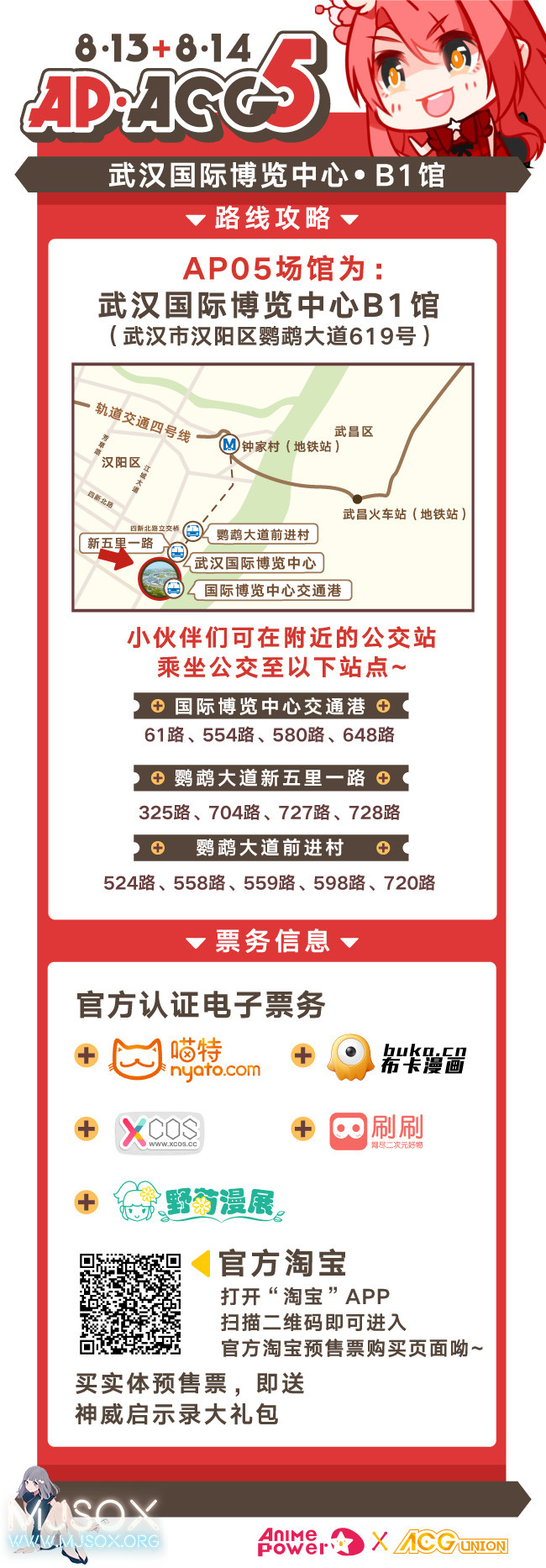 ★AP05门票贩售与场馆线路图 刷刷、喵特、XCOS、野菊漫展网电子票全部上线啦! 漫展预售票唯一官方地址: https://item.taobao.com/item.htm?id=533978011410 小山力也见面会VIP票唯一售票地址 https://item.taobao.com/item.htm?id=534276004170