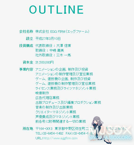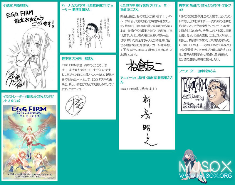 对日本动画有一定了解人可能对各大动画公司都知道一二分,或者还有自己心中最喜欢的动画公司。不过今天要说的这家新公司却一点不比大牌老公司逊色。震动动漫业界的,由强力经纪人及顶级创作者组成的新动画公司EGG FIRM于2016年起正式开始运作。EGG FIRM是由经验丰富的经纪人大泽信博于2015年所创立,以动画企划制作为主的综合性经纪公司。 此次EGG FIRM由小说家川原砾、脚本家大河内一楼、动画演出及监督新房昭之等日本国内顶级的创作者作为创作团体加盟。并且在此之前,还携手了从角川独立出来的,原电击文库总编三木一马的新公司Straight Edge。同时广告代理公司Quaras和BARNUM工作室也参与其中。其目的是强强联手创作出新的作品。 EGG FIRM首个运作的作品,是2016年7月起播出TV动画「齐木楠雄的灾难」。其原作是麻生周一在「周刊少年JUMP」伤连载的同名漫画,讲述的是超能力高中生齐木楠雄的超能力喜剧。集结了樱井弘明监督、横手美智子系列构成、音地正行角色设计等精英,主角齐木楠雄的声优为人气声优神谷浩史。EGG FIRM与J.C.STAFF一起出品了这部动画。除此之外目前已参与制作加速世界剧场版、刀剑神域剧场版。 然而集结了各路创作者的EGG FIRM商业计划也许是为了今后更受人瞩目。作为代表的大泽信博担任了诸如「刀剑神域」、「监狱学园」、「在地下城寻求邂逅是否搞错了」等热门作品的主经纪人。EGG FIRM将致力于动漫企划制作等的综合整合,甚至将创作新的作品。 为此而加盟的川原砾、大河内一楼、新房昭之等创作阵容。川原砾以轻小说「刀剑神域」、「加速世界」,大河内一楼以动画「甲铁城的卡巴内瑞」、「反叛的鲁鲁修」等,新房昭之以动画「魔法少女小圆」、「物语」系列等为人所知。三人同时加盟EGG FIRM旗下,给人的感觉就是想要有所新的尝试。 而Straight Edge的三木,作为主编给世人带来过「灼眼的夏娜」、「某魔法禁书目录」、「刀剑神域」、「魔法科高校的劣等生」、「我的妹妹不可能这么可爱」(以上均为电击文库作品)等作品。如果有新的创作,也是发挥其能力的良机。三木作为EGG FIRM的董事会成员,同时大泽也成为了Straight Edge的董事会成员,作为动漫及发行公司的两方强强联手。 作为新动画公司,动画的实际制作大多是分包给各工作室的,也就是说新企业的商业模式是投资能力较强企业制作动画。 另一方面EGG FIRM以动画企划、整合、创作为重点,并且这些需要经纪人及创作者协力完成,由此或许可以产生出和以往不同的东西。有那么多操手在一起能创造出什么样的作品来,光是这一点就足够让人期待了,同时新动漫的可能性,也让人关注EGG FIRM的动向。 |