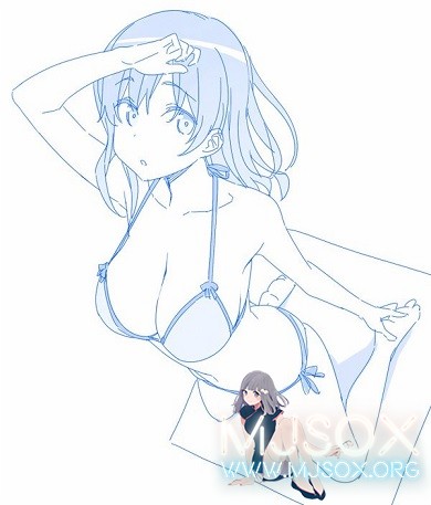 比村:一开始画的图都是1小时内完工的。现在的话基本上画一张肯定要花7小时。一开始我画这些图并没有什么特定的主题,只是顺着自己的想法画一些穿着泳装的类似卷首插图一样的图。不过在夏天结束的时候,为了让图片能够带有一种季节交替的感觉,我开始注重整个图片的环境,因此也开始花一些时间考虑图片的主题,标题等内容。 左图为2015年2月23日投稿的作品,右图为大约一年后的2016年2月21日投稿的作品。很明显,1年后的作品要精细许多