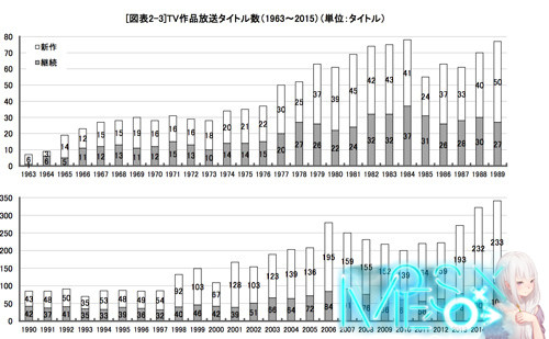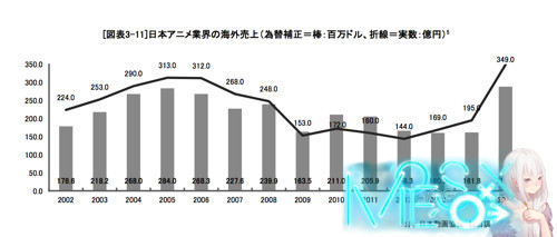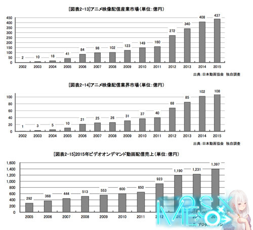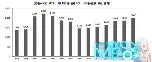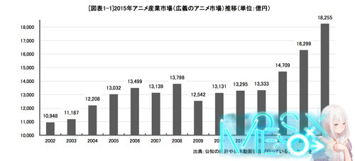 日本动画协会每年出版的《日本动画产业报告 》在昨天正式发售,每年的这份报告都类似于日本动画行业上一年度的年鉴,很有入手价值而且日本动画协会还提供了下载版和实体版两种版本方便日本国内和国外 的人购买,价格也还可以 6480 日元一份。在昨天购买后花了一个晚上和一个上午的时间去阅读了这份报告,在 2015 年日本动画市场最大的一个变数就是面向海外市场的合同和销售额激增,合同增长了四倍销售额增长了 78%,而这其中来自中国视频网站可以说不计成本的买买买促进日本动画在海外市场销售额的成长,但面对来自中国土豪的金钱力量,报告中保持了一种谨慎乐观 的态度,更是提到中国疯狂的买买买可能导致日本动画行业重现泡沫。 这份报告比较长不算附录内容,正文报告就有 72 页之多,而且涉及到了日本动画行业的方方方面,这篇文章将会摘录我个人认为比较重要的内容与大家分享 2015 年日本动画产业市场规模